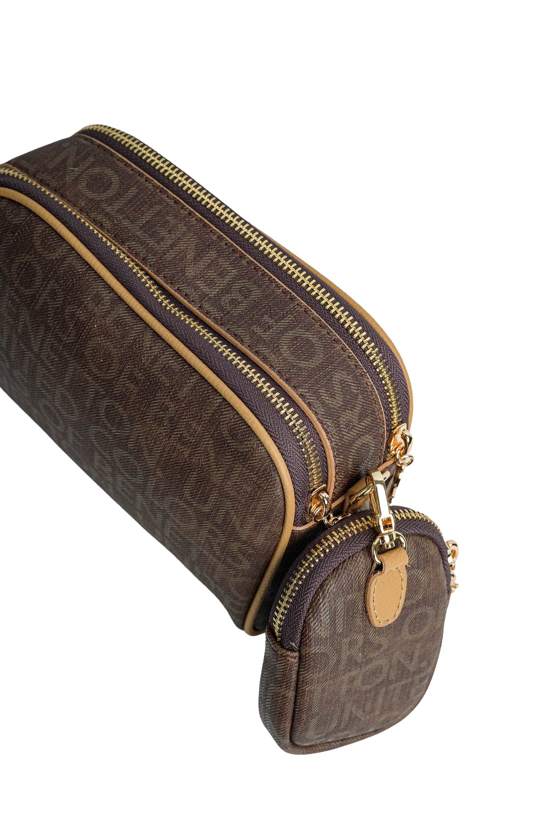 תיק ערב מדהים שכל אחת חייבת לעצמה! תיק בגודל קטן, עשוי חומר דמוי עור איכותי! התיק תפור בטקסטורה של לוגו המותג לכל רוחבו של התיק ולוגו מתכת בצד הקדמי של התיק. לתיק יש רצועה מבד דמוי עור תפורה לתיק לנשיאת התיק על הכתף.תא קידמי עם ריצרץ ותא אחורי ובתוך התיק יש ריצרץ נוסף לדברים חשובים וכיס פנימי לכל צורך. מגיע עם פאוץ קטן נוסף למטבעות או דברים קטנים,לתיק יש רצועה מתכווננת לגודל הרצוי , אחריות יבואן רשמי BRANDS4YOU