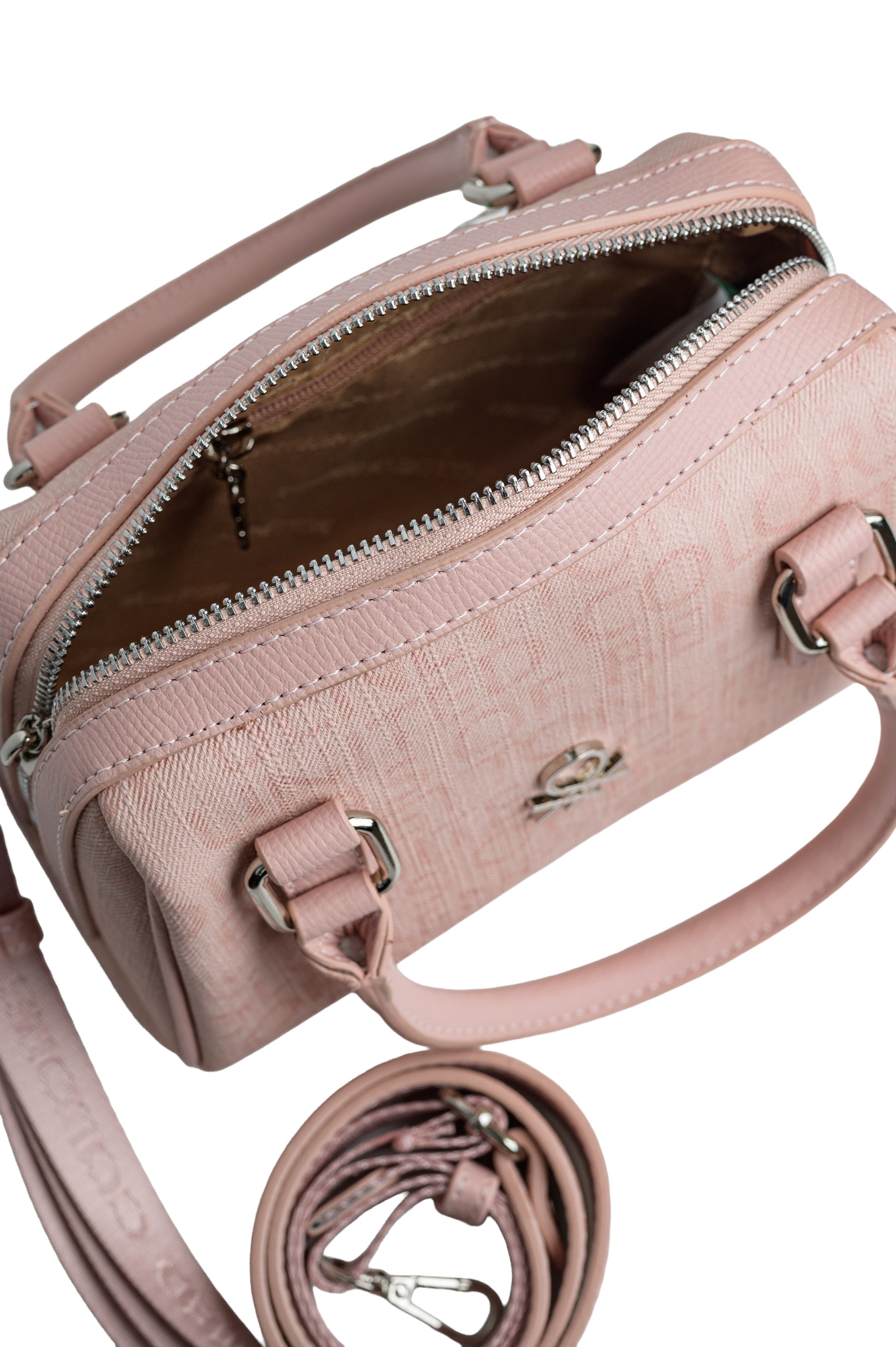 תיק ערב מדהים שכל אחת חייבת לעצמה! מבית המעצב האטלקי Benetton ,תיק בגודל בינוני/קטן, עשוי חומר דמוי עור איכותי! התיק תפור בטקסטורה של לוגו המותג לכל רוחבו של התיק ולוגו מתכת בצד הקדמי של התיק. לתיק יש רצועה מבד דמוי עור תפורה לתיק לנשיאת התיק על הכתף. בתוך התיק יש ריצרץ נוסף לדברים חשובים וכיס פנימי לכל צורך. לתיק יש רצועה מתכווננת לגודל הרצוי + ידית נשיאה ביד, אחריות יבואן רשמי BRANDS4YOU