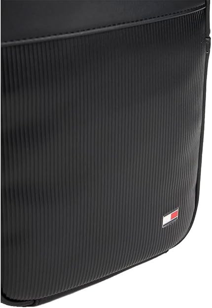 תיק צד לגבר עשוי PU איכותי, בצבע שחור, עם לוגו TOMMY HILFIGER מתכתי שמוטבע בחזית, חלוקה לשני תאים בחלק העליון עם סגירת רוכסן ובחזית תא חיצוני ורצועת כתף מתכווננת.