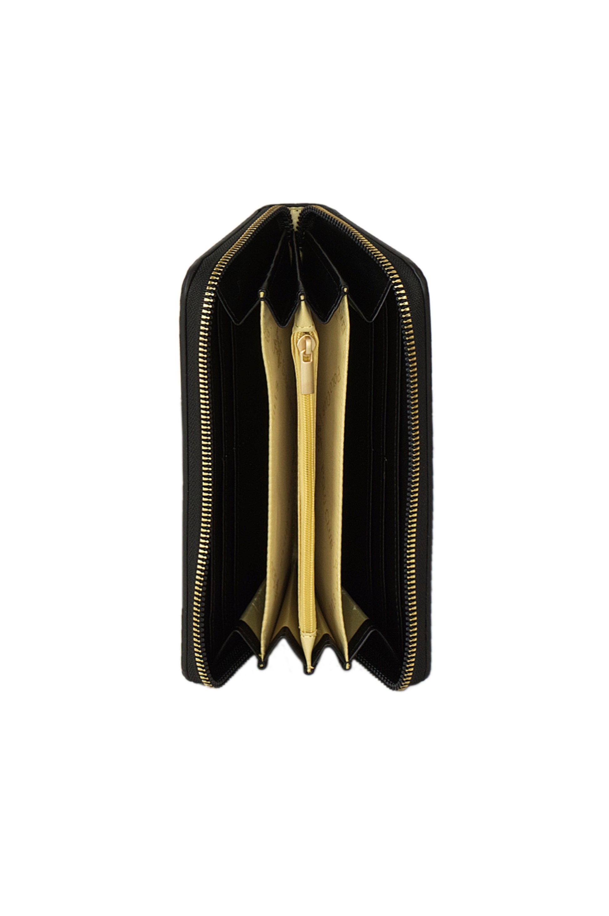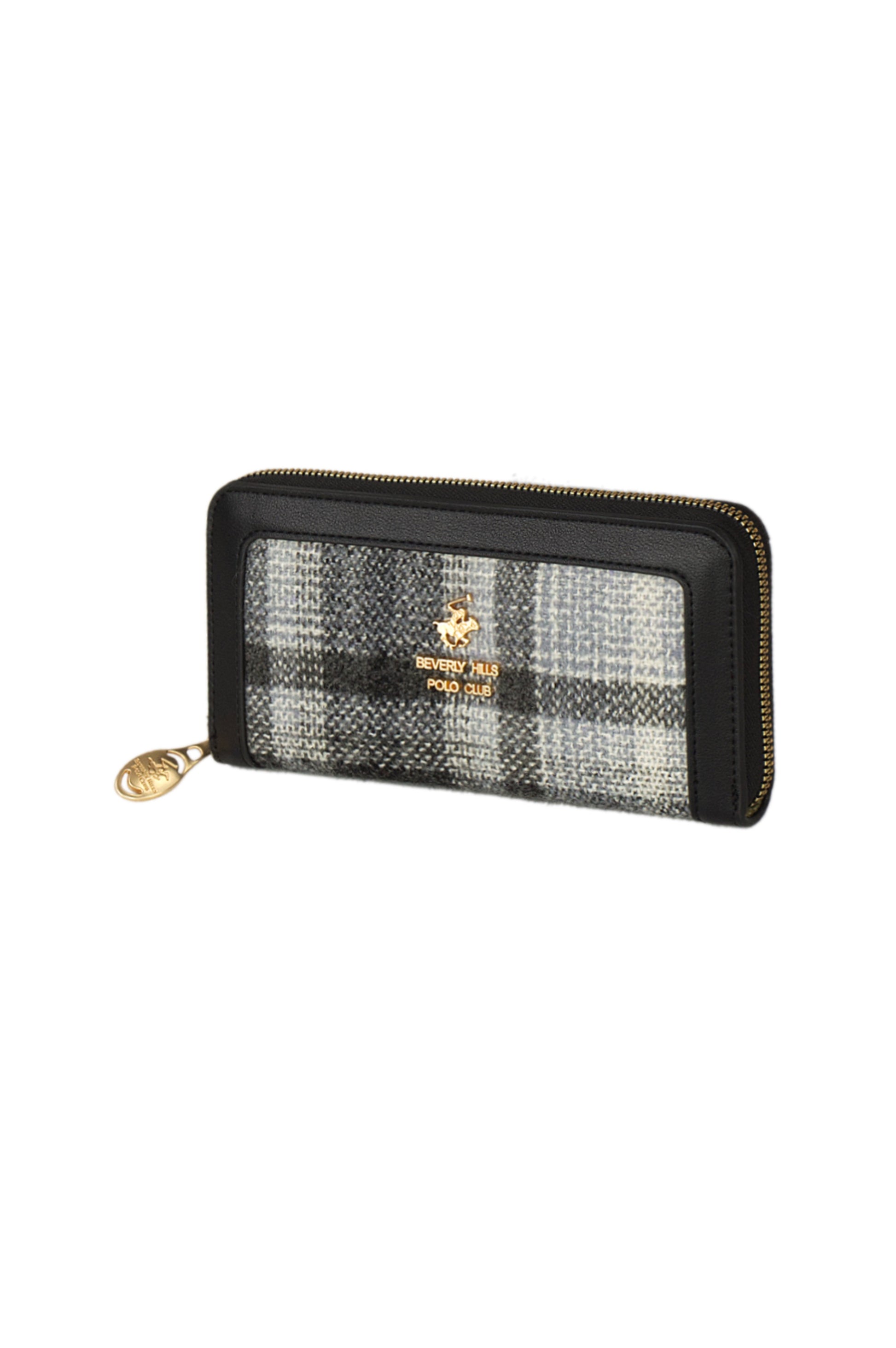 ארנק בגודל לארג' מבית POLO BEVERLY HILLS, עשוי פוליאוריתן במרקם עור משולב שריג בצבע שחור עם לוגו בתפירה. לארנק חריצים מיועדים לכרטיסים, בשילוב כיס במרכז למטבעות בסגירת ריצרץ. מגיע עם 9 מקום לכרטיסים, תא 1 לצקים, תא גדול למטבעות כפתור.ארנק מושלם ומאוד פרקטי. מידות : 10.5x19x2.5