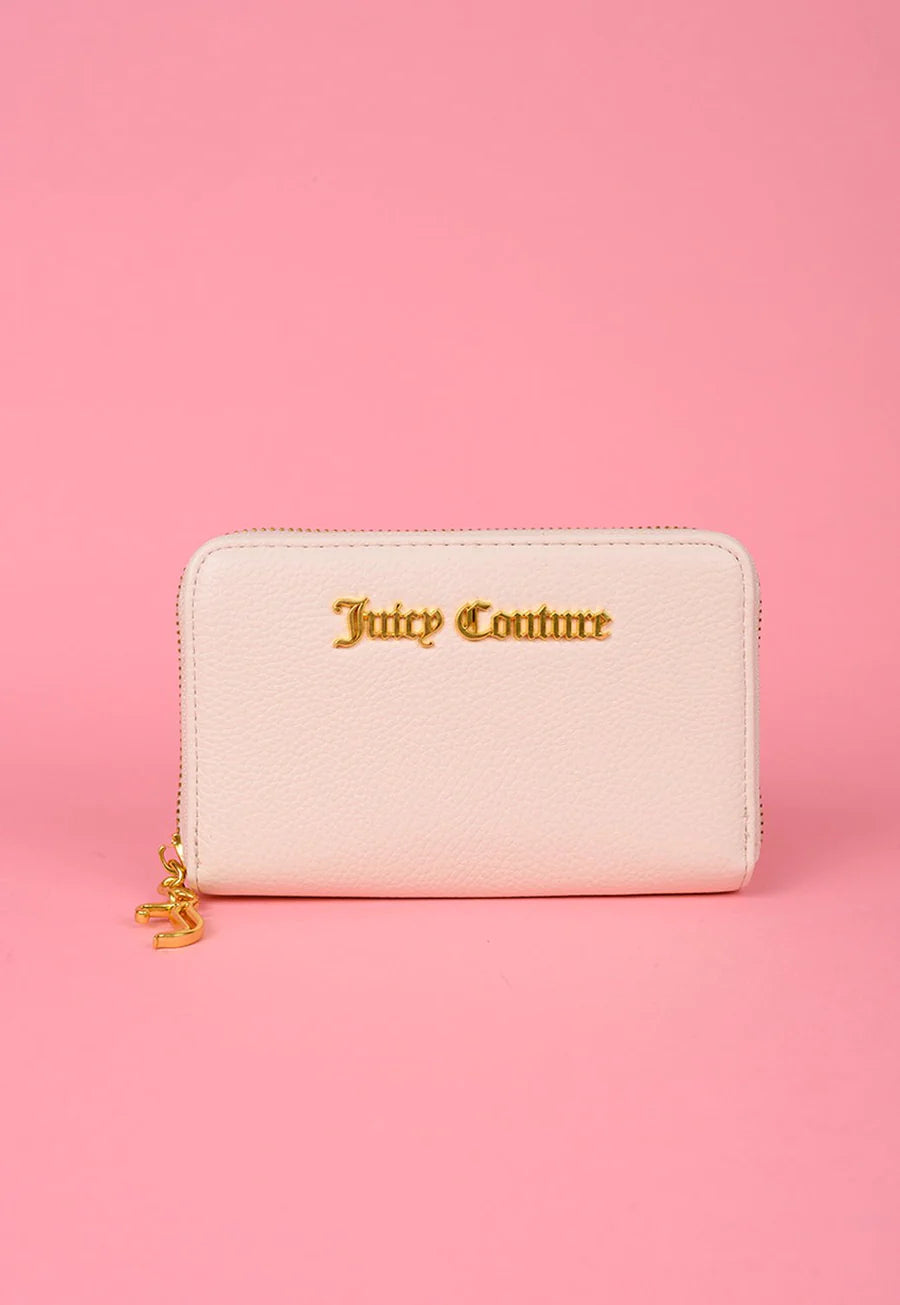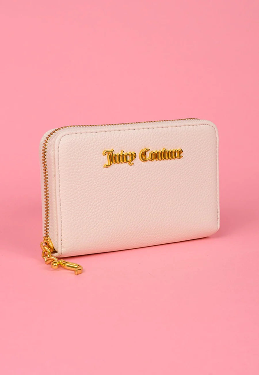 ארנק מרוכסן עם שלושה תאים וכיס פנימי מרוכסן. לארנק לוגו מובלט בחזית.