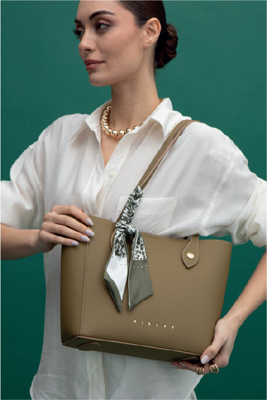 תיק אישה מדהים שכל אחת חייבת לעצמה! מבית המעצב האטלקי SISLEY ,תיק בגודל בינוני, עשוי חומר דמוי עור איכותי! התיק תפור בטקסטורה של עור מחוספס ולוגו מוטבע של המותג. לתיק יש רצועה דמוי עור עם צעיף לנשיאה ביד ובנוסף רצועה לנשיאת התיק על הכתף. בתוך התיק יש ריצרץ מרכזי של התיק ובנוסף שתי תאים צדדים נסגרים עם מגנט נוסף תא ריצרץ בפנים התיק לדברים חשובים וריצרץ קידמי. לתיק יש רצועה עור משולב מתכת מוזהבת + ידית נשיאה ביד, אחריות יבואן רשמי BRANDS4YOU
