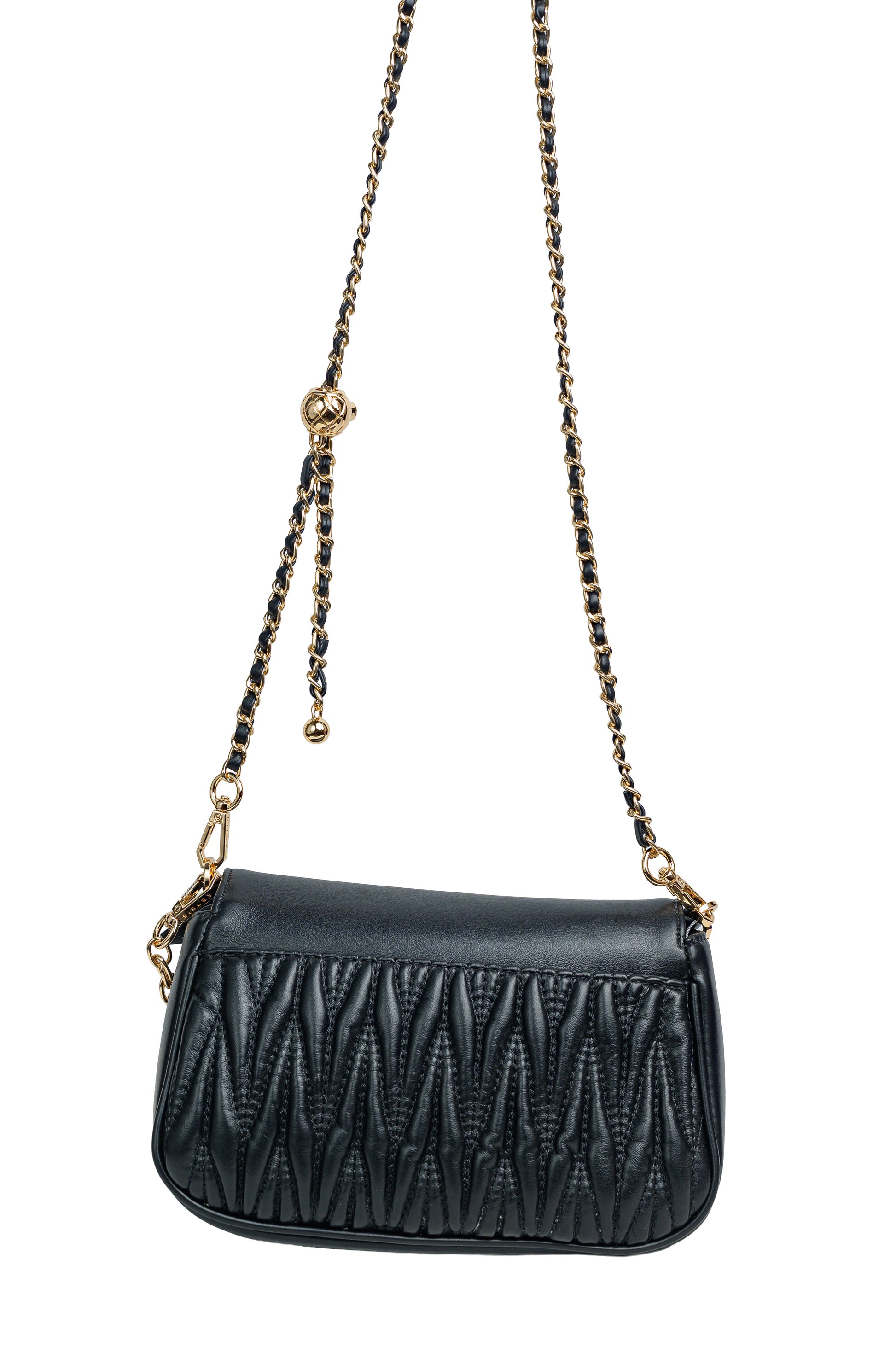 תיק ערב מדהים שכל אחת חייבת לעצמה! מבית המעצב SISLEY , תיק בגודל קטן, עשוי חומר דמוי עור וטקסטורה על העור איכותי! התיק תפור בטקסטורה של לוגו המותג בצד הקדמי של התיק. לתיק יש רצועה דמוי עור משולב שרשרת מתחברת לתיק לנשיאת התיק על הכתף.תא מרכזי עם ריצרץ ובתוך התיק יש ריצרץ נוסף לדברים חשובים וכיס פנימי לכל צורך. שרשת בצבע זהב בקידמת התיק, לתיק יש רצועה מתכווננת לגודל הרצוי , אחריות יבואן רשמי BRANDS4YOU