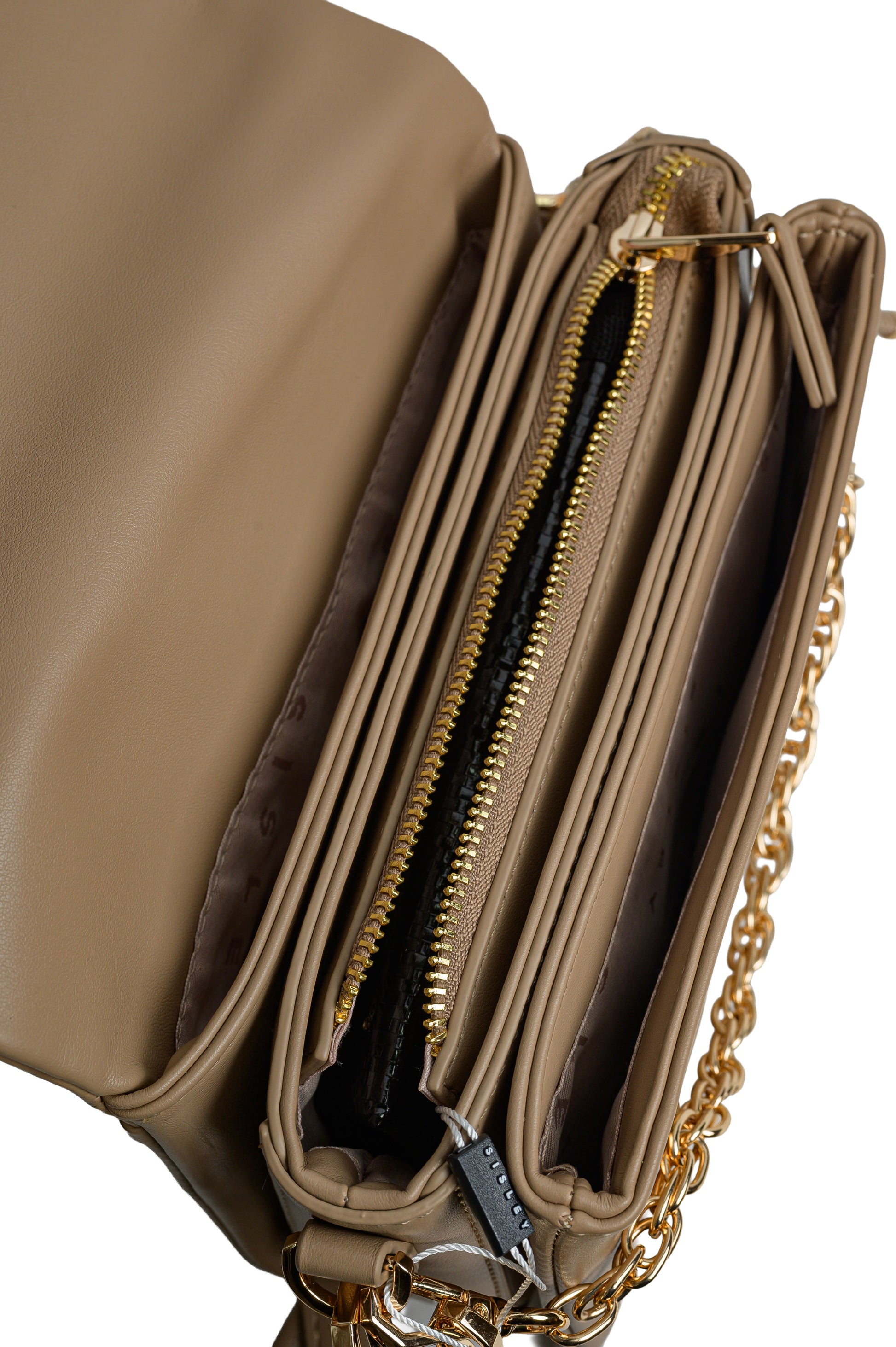 תיק ערב מדהים שכל אחת חייבת לעצמה! מבית המעצב SISLEY , תיק בגודל קטן, עשוי חומר דמוי עור וטקסטורה על העור איכותי! התיק תפור בטקסטורה של לוגו המותג בצד הקדמי של התיק. לתיק יש רצועה דמוי עור מתחברת לתיק לנשיאת התיק על הכתף. תא מרכזי עם ריצרץ ובתוך התיק יש ריצרץ נוסף לדברים חשובים וכיס פנימי לכל צורך.,ושרשת בצבע זהב בקידמת התיק, לתיק יש רצועה מתכווננת לגודל הרצוי , אחריות יבואן רשמי BRANDS4YOU