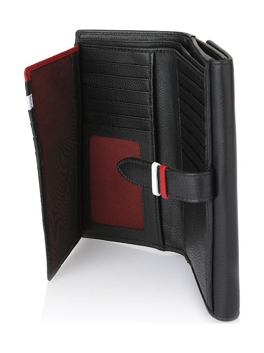 ארנק בגודל לארג' מבית POLO BEVERLY HILLS, עשוי פוליאוריתן במרקם מגורען בצבע שחור עם הטבעת לוגו . לארנק חריצים מיועדים לכרטיסים, בשילוב כיס במרכז למטבעות בסגירת כפתור.מגיע עם 19 מקום לכרטיסים, תא 1 לצקים, תא גדול בגב הארנק למטבעות בנוסף יש לו סגירה של הארנק עם כפתור. ארנק מושלם ומאוד פרקטי. מידות : 9.5x18,5x3