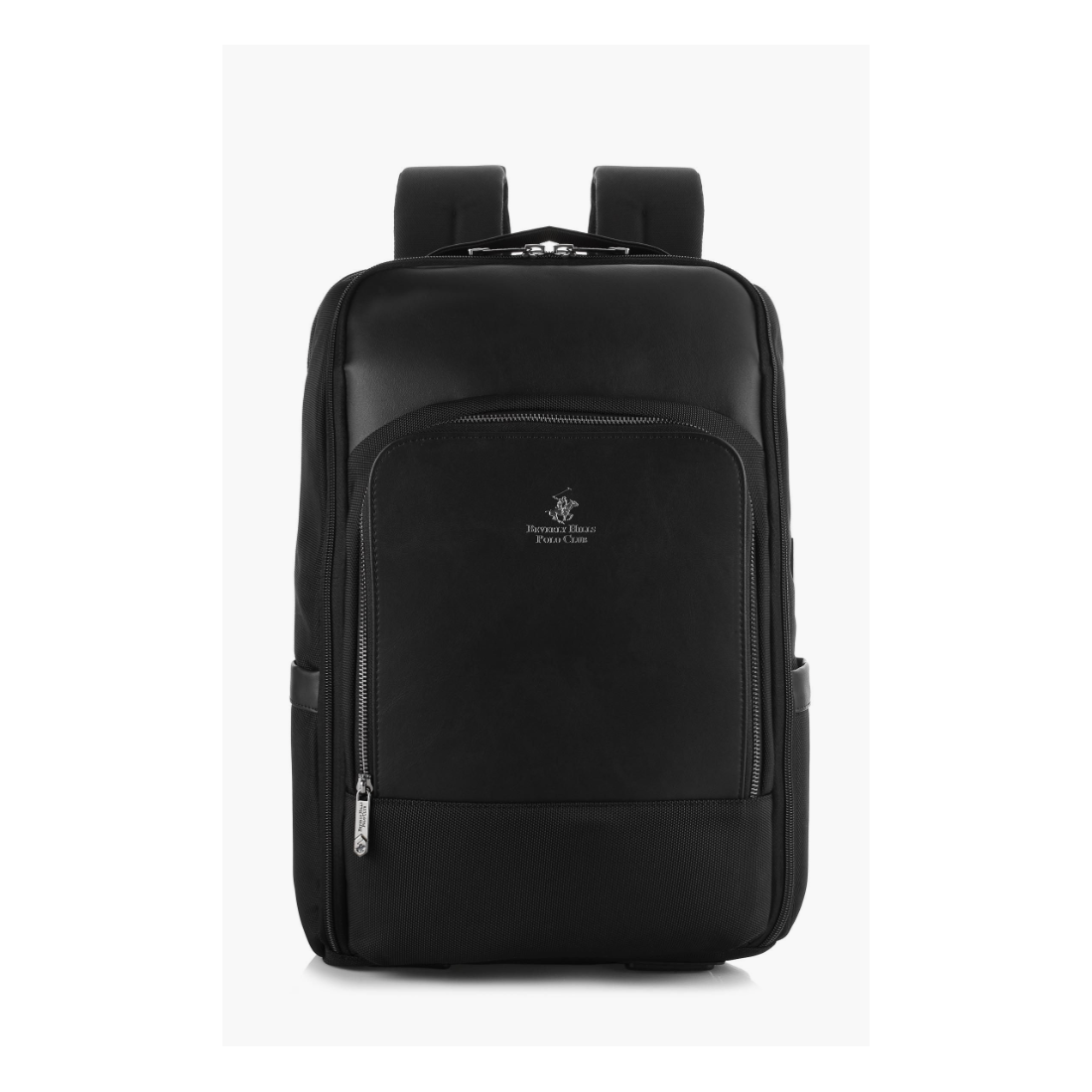 תיק גב יוקרתי בגוון שחור קלאסי משולב בד ו PU מבית POLO BEVERLY HILLS עם לוגו הדגל האייקוני בחזית. מגיע עם תא מרכזי גדול, ותא למחשב עם סגירה, תא קדמי עם רוכסן ועוד כיס עם רוכסן קדמי ורצועות גב מרופדות לנשיאה נוחה לאורך זמן. הגב עשוי בד רשת נושם לחוויית שימוש קלה ומאווררת. אידיאלי לבית ספר, לשימוש יומיומי או לנסיעות, מגיע עם מחזיק מזוודה בגב התיק לנוחות לנסיעות לחול, כולל חיבור חיצוני למטען נייד, מידות :30*44*18