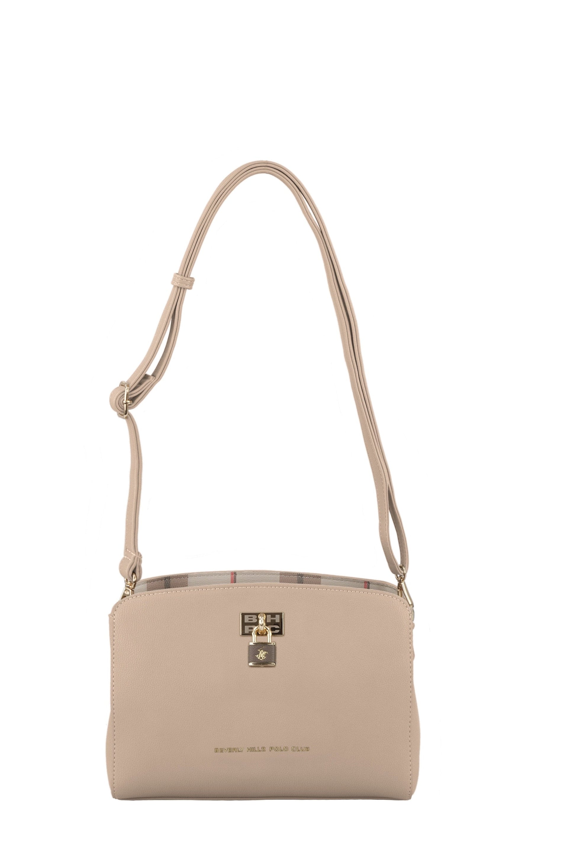 תיק אישה מדהים שכל אחת חייבת לעצמה! מבית המעצב האמרקאי POLO BEVERLY EILLS ,תיק בגודל בנוני מעוצב, עשוי חומר דמוי עור איכותי! התיק תפור בטקסטורה של עור ,בפנים התיק טקסטורה של משבצות לוגו המותג מוטבע על העור בקדמת התיק ולוגו מנעול עם הסוס בראש התיק. לתיק יש רצועה דמוי עור מתכווננתל נשיאה על הכתף . בתוך התיק יש ריצרץ מרכזי של התיק, תא ריצרץ בפנים התיק לדברים חשובים ותא פנימי.ריצרץ אחורי בגב התיק נוסף, ידית נשיאה כתף, אחריות יבואן רשמי BRANDS4YOU