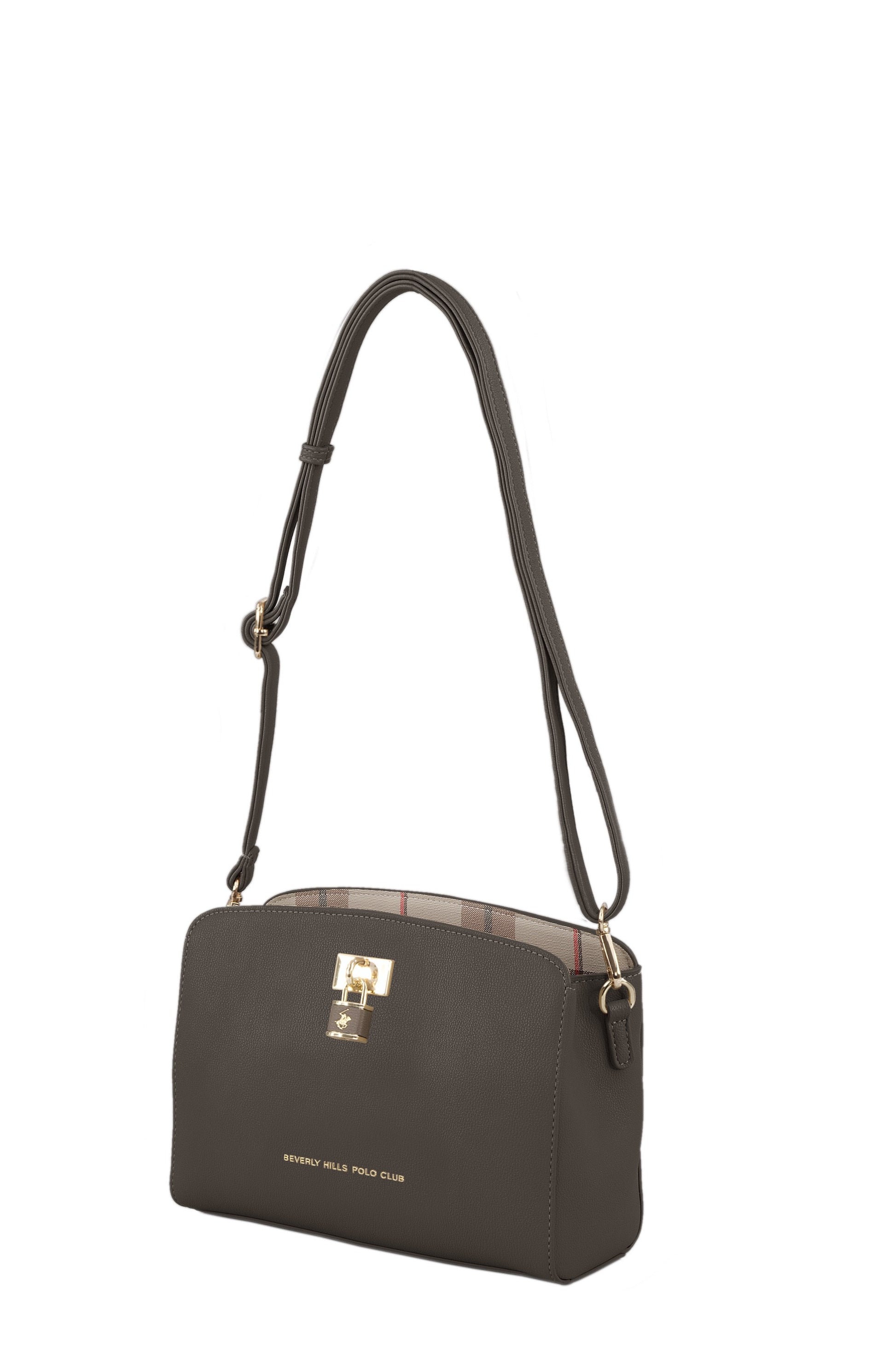 תיק אישה מדהים שכל אחת חייבת לעצמה! מבית המעצב האמרקאי POLO BEVERLY EILLS ,תיק בגודל בנוני מעוצב, עשוי חומר דמוי עור איכותי! התיק תפור בטקסטורה של עור ,בפנים התיק טקסטורה של משבצות לוגו המותג מוטבע על העור בקדמת התיק ולוגו מנעול עם הסוס בראש התיק. לתיק יש רצועה דמוי עור מתכווננתל נשיאה על הכתף . בתוך התיק יש ריצרץ מרכזי של התיק, תא ריצרץ בפנים התיק לדברים חשובים ותא פנימי.ריצרץ אחורי בגב התיק נוסף, ידית נשיאה כתף, אחריות יבואן רשמי BRANDS4YOU