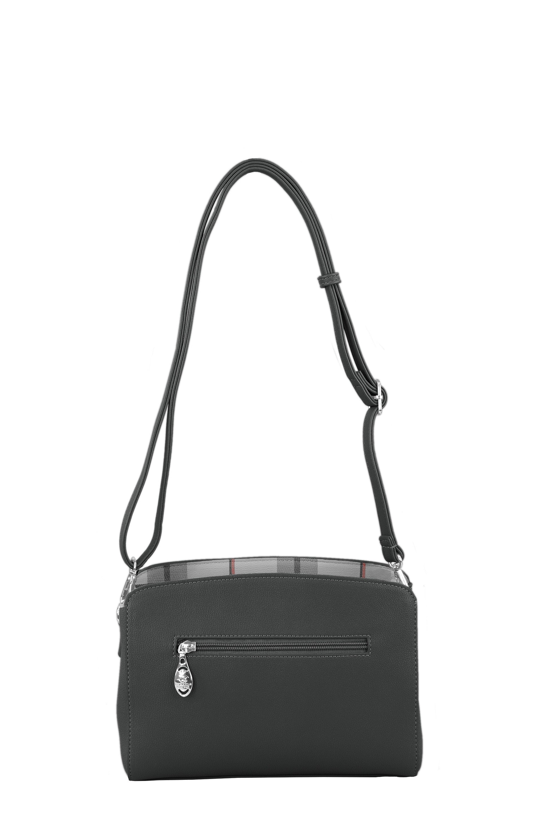 תיק אישה מדהים שכל אחת חייבת לעצמה! מבית המעצב האמרקאי POLO BEVERLY EILLS ,תיק בגודל בנוני מעוצב, עשוי חומר דמוי עור איכותי! התיק תפור בטקסטורה של עור ,בפנים התיק טקסטורה של משבצות לוגו המותג מוטבע על העור בקדמת התיק ולוגו מנעול עם הסוס בראש התיק. לתיק יש רצועה דמוי עור מתכווננתל נשיאה על הכתף . בתוך התיק יש ריצרץ מרכזי של התיק, תא ריצרץ בפנים התיק לדברים חשובים ותא פנימי.ריצרץ אחורי בגב התיק נוסף, ידית נשיאה כתף, אחריות יבואן רשמי BRANDS4YOU
