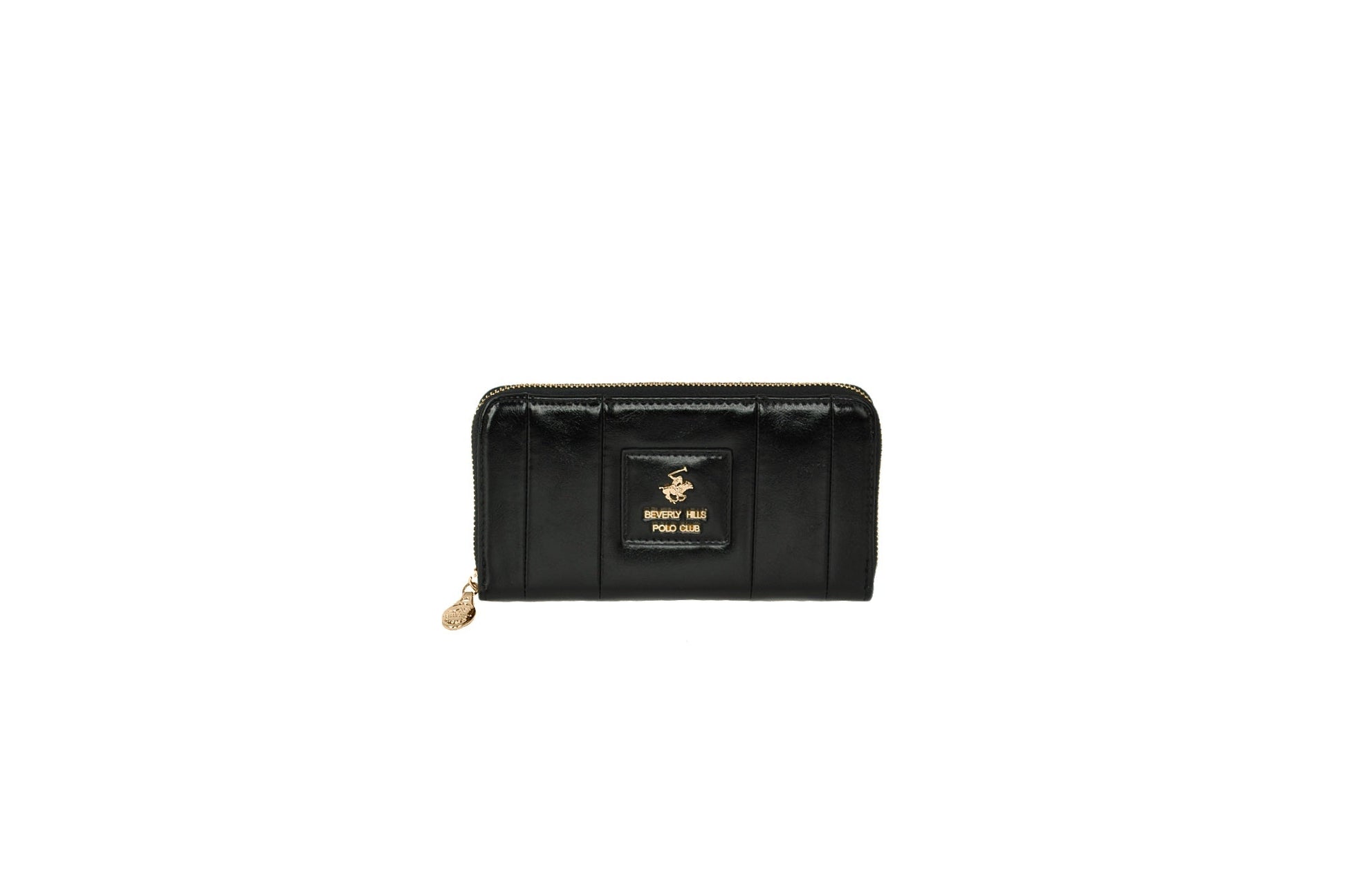 ארנק בגודל לארג' מבית POLO BEVERLY HILLS, עשוי פוליאוריתן במרקם מגורען בצבע שחור עם לוגו בתפירה. לארנק חריצים מיועדים לכרטיסים, בשילוב כיס במרכז למטבעות בסגירת ריצרץ. מגיע עם 9 מקום לכרטיסים, תא 1 לצקים, תא גדול למטבעות כפתור.ארנק מושלם ומאוד פרקטי. מידות : 10.5x19x2.5